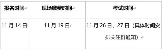本校教职工请于11月26日-11月27日到英庐一楼,现场缴费、确认,并参加考试。需带好新工作证。