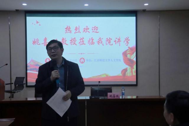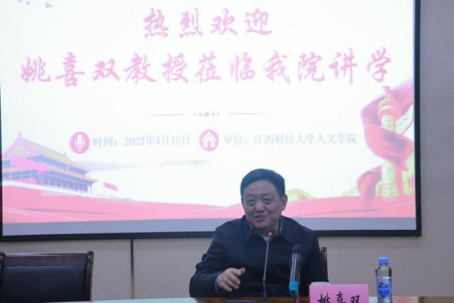 4月15日,国家督学、教育部语言文字应用管理司原司长、国家语委普通话与文字应用培训测试中心主任、中国传媒大学教授、博士生导师姚喜双应邀来我校为广大师生举办了题为“声音中的党史——毛泽东诗词赏析朗诵”的学术讲座。本次讲座由欧阳康副校长主持,江西省教育厅语言文字工作与教材处领导、江西科技师范大学领导以及我校人文学院部分师生参加了本次讲座。