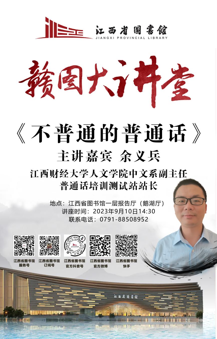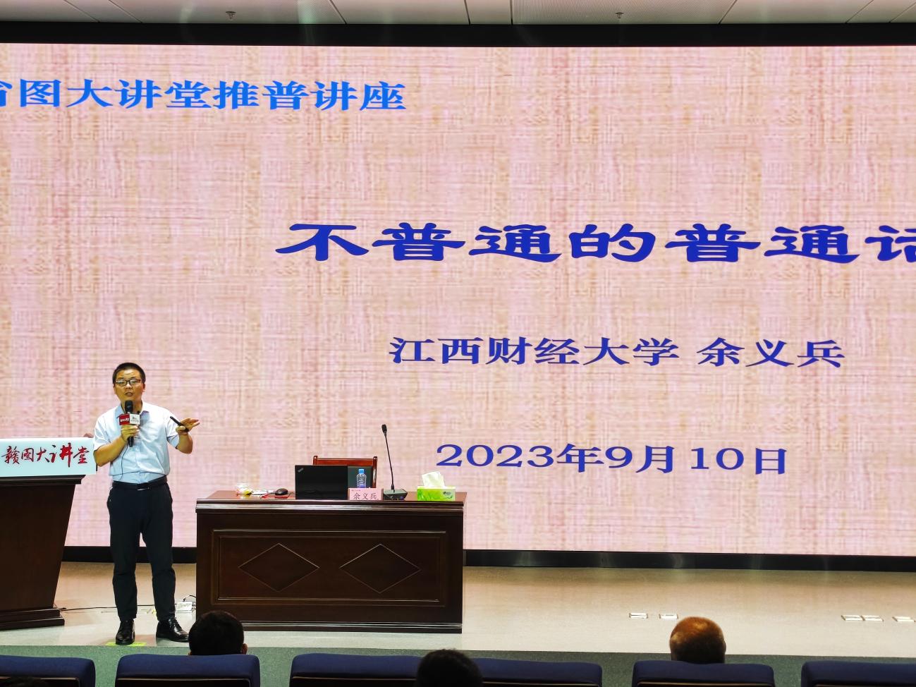 2023年9月11日至17日为第26届全国推广普通话宣传周,为积极推进本届推普周工作,营造学习使用国家通用语言文字的浓厚氛围,江西省图书馆、江西财经大学校友会和江西财经大学人文学院精心组织了本次讲座。