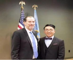 在联合国粮农组织工作的社会工作专业校友张兆宇与联合国信息中心主任RobertSkinner合影
