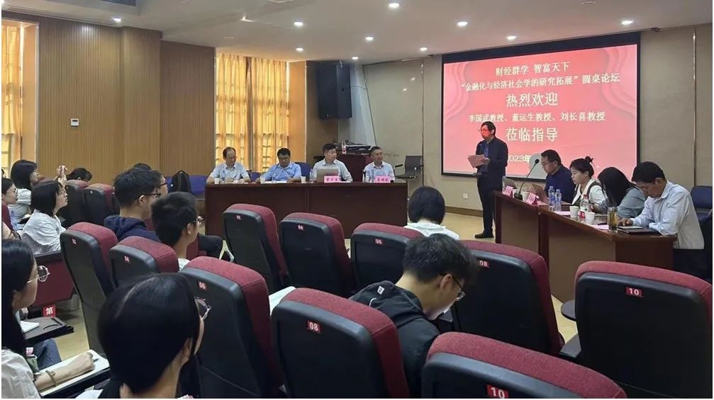 “财经群学,智富天下”。为思考财经类高校如何建设有特色的经济社会学学科,加强与财经类兄弟高校社会学学科的学术交流,2023年11月4日上午,在学校、学院等的支持下,江西财经大学社会学系经济社会学创新团队在麦庐园人文楼Y119举办了一场以“金融化与经济社会学的研究拓展”为主题的圆桌论坛。论坛邀请到中央财经大学社会与心理学院院长李国武教授、上海财经大学人文学院副院长刘长喜教授、吉林大学哲学社会学院社会学系主任董运生教授、江西财经大学人文学院讲师郑翩翩博士发表专题讲演。