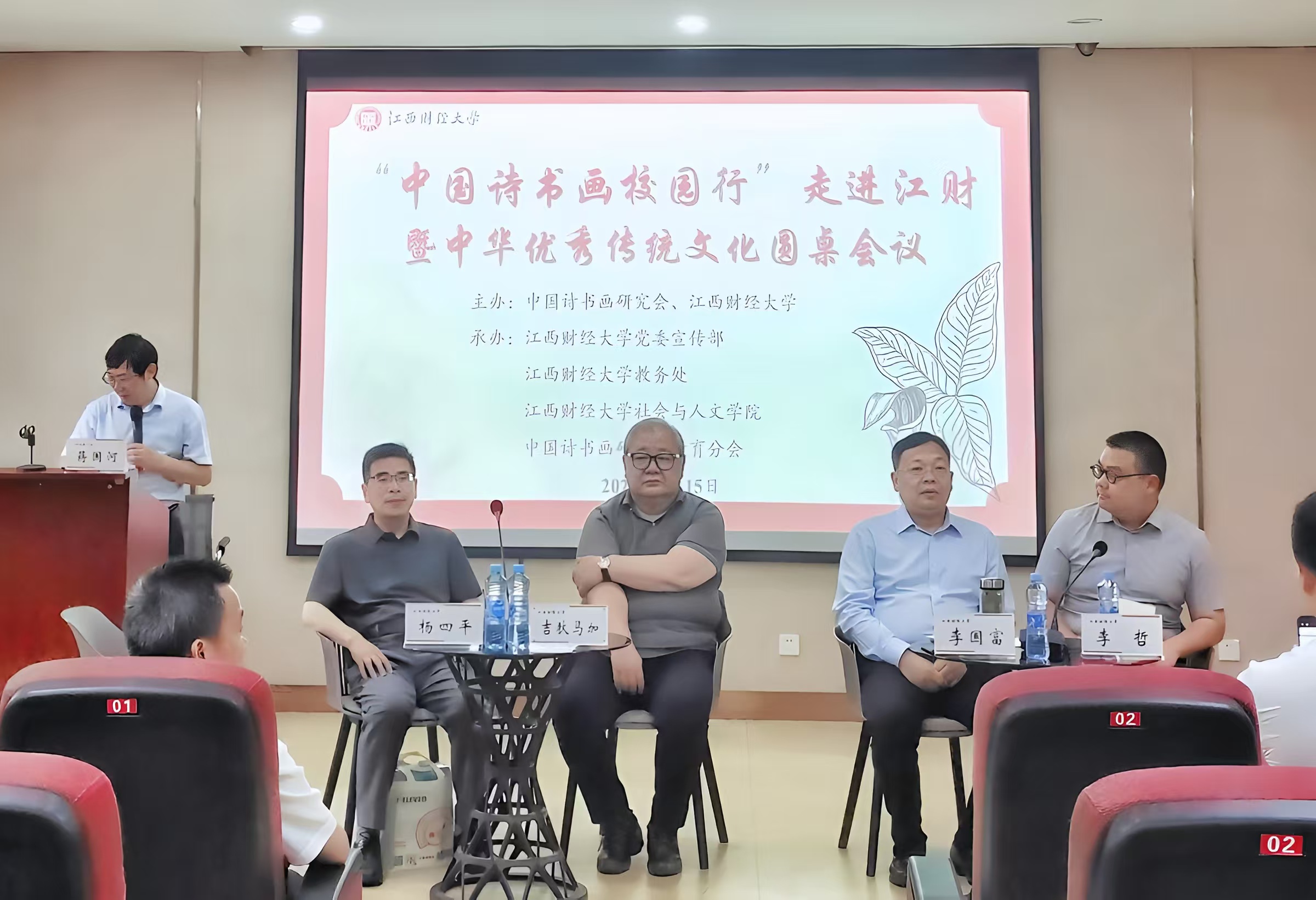 6月15日上午,由中国诗书画研究会与江西财经大学主办,党委宣传部、教务处、社会与人文学院及中国诗书画研究会教育分会共同承办的“中国诗书画校园行”走进江财暨“新文科大讲堂”在我校举行。中国作家协会原副主席、书记处书记,中国诗书画研究会名誉会长吉狄马加应邀做客学校“新文科大讲堂”并作专题讲座。校党委书记刘耀彬、校长邓辉出席相关活动,党委常委、副校长阙善栋主持讲座。