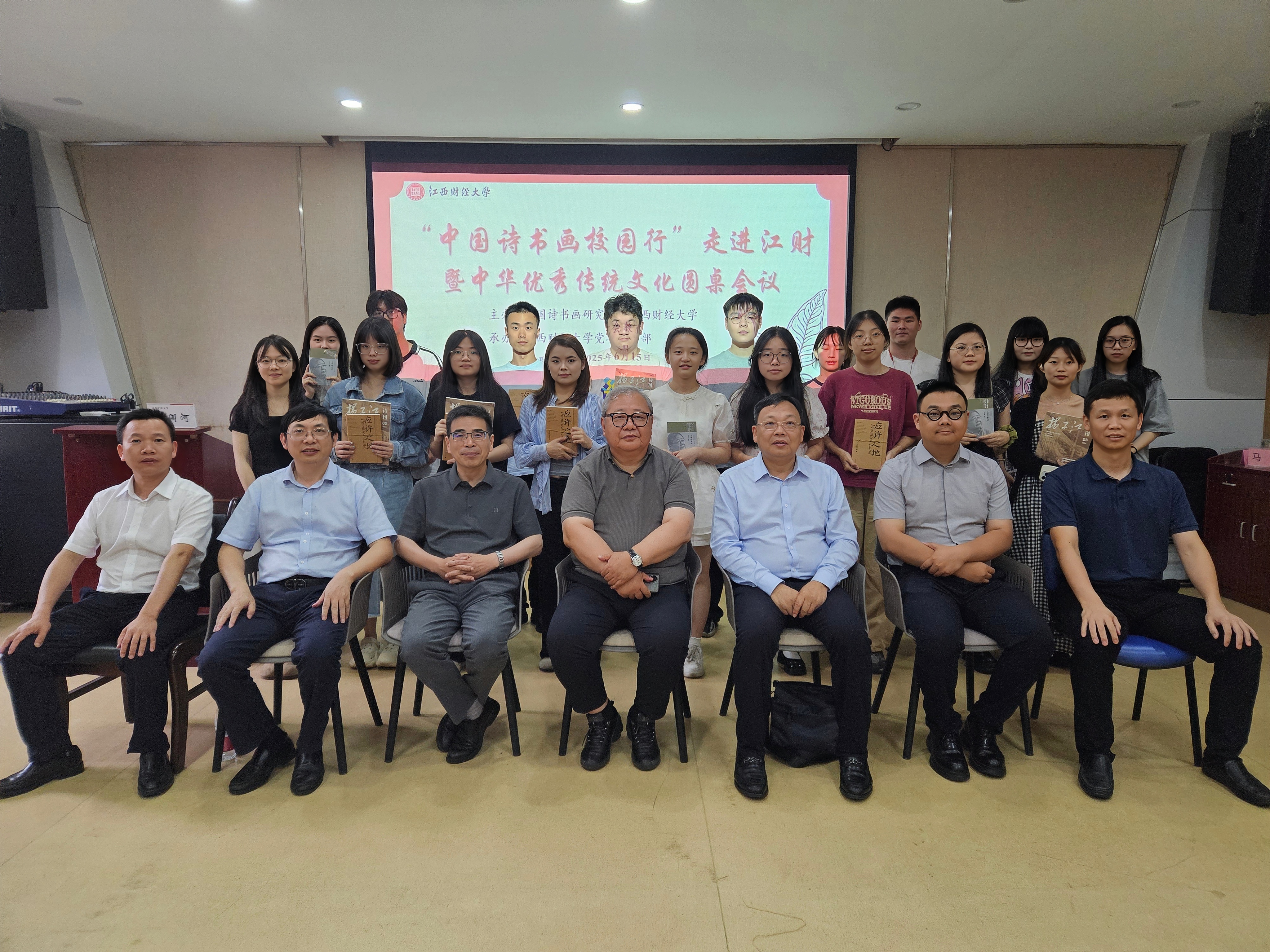 中国诗书画研究会驻会副会长、民进中央文化艺术委员会委员、中国诗书画公益行发起人李国富,上海外国语大学教授、世界诗人大会中国办事处副主任杨四平,青年诗人、第十届扬子江青年诗人奖得主李哲出席活动。学校相关单位负责同志,老年诗协(烛光诗社)、江财校友会沁缘诗社诗友代表,诗书画爱好者及师生代表等参加活动。