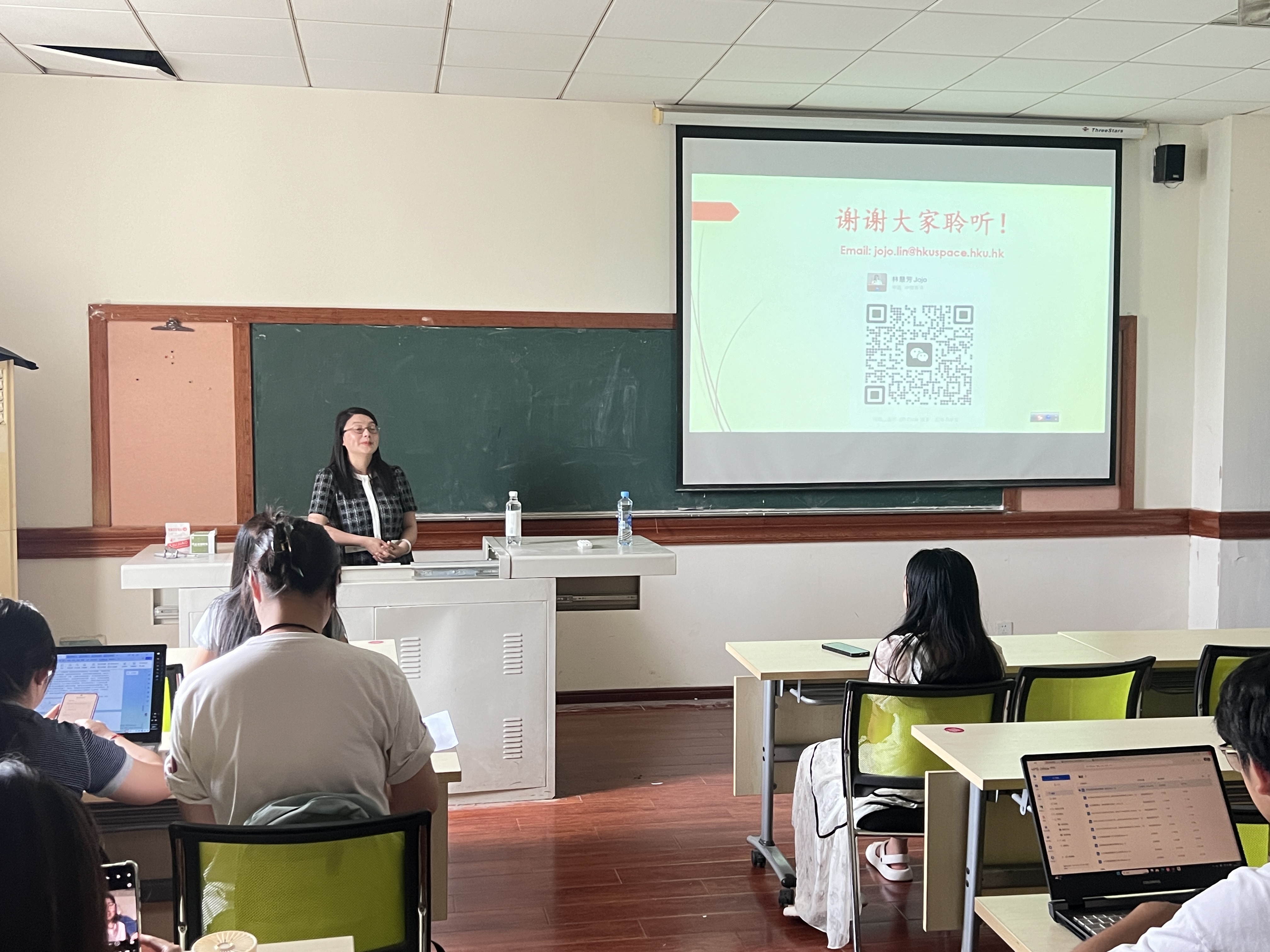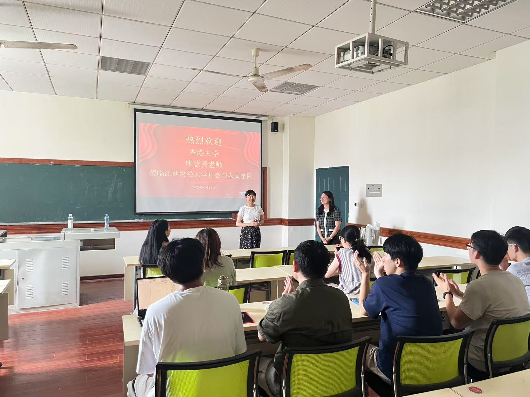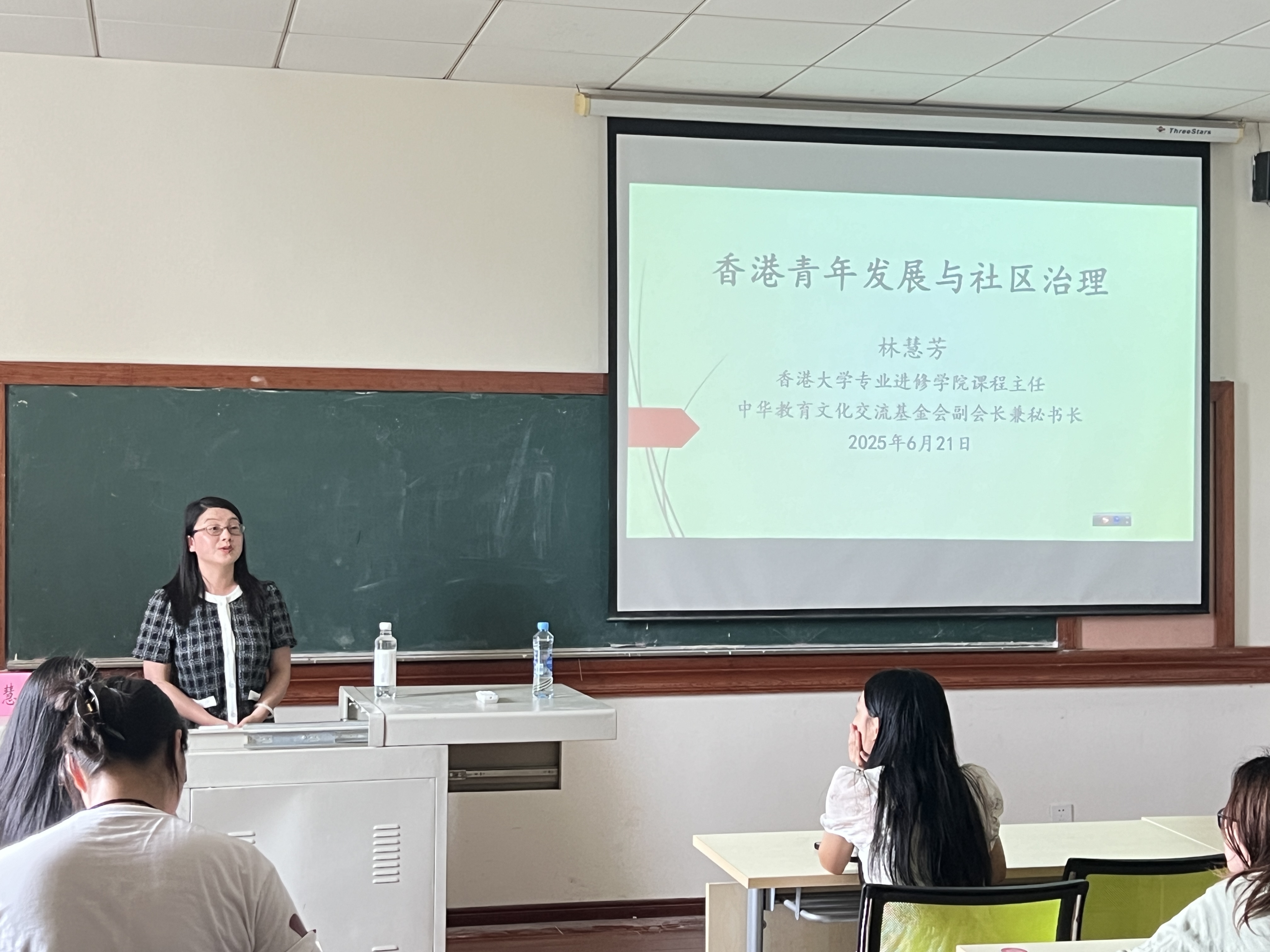 2025年6月21日下午,江西财经大学社会与人文学院在英庐Y506教室举办专题学术讲座,特邀香港大学专业进修学院课程主任、高级讲师,中华教育文化交流基金会副会长兼秘书长林慧芳女士担任主讲人。讲座以“香港青年发展与社区治理”为主题,由洪泸敏副院长主持,社会工作专业本科生及社会学、社会工作专业硕士生共同参与学习。