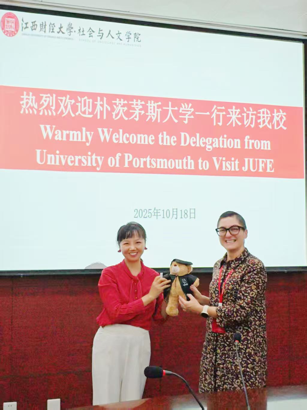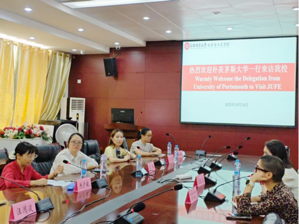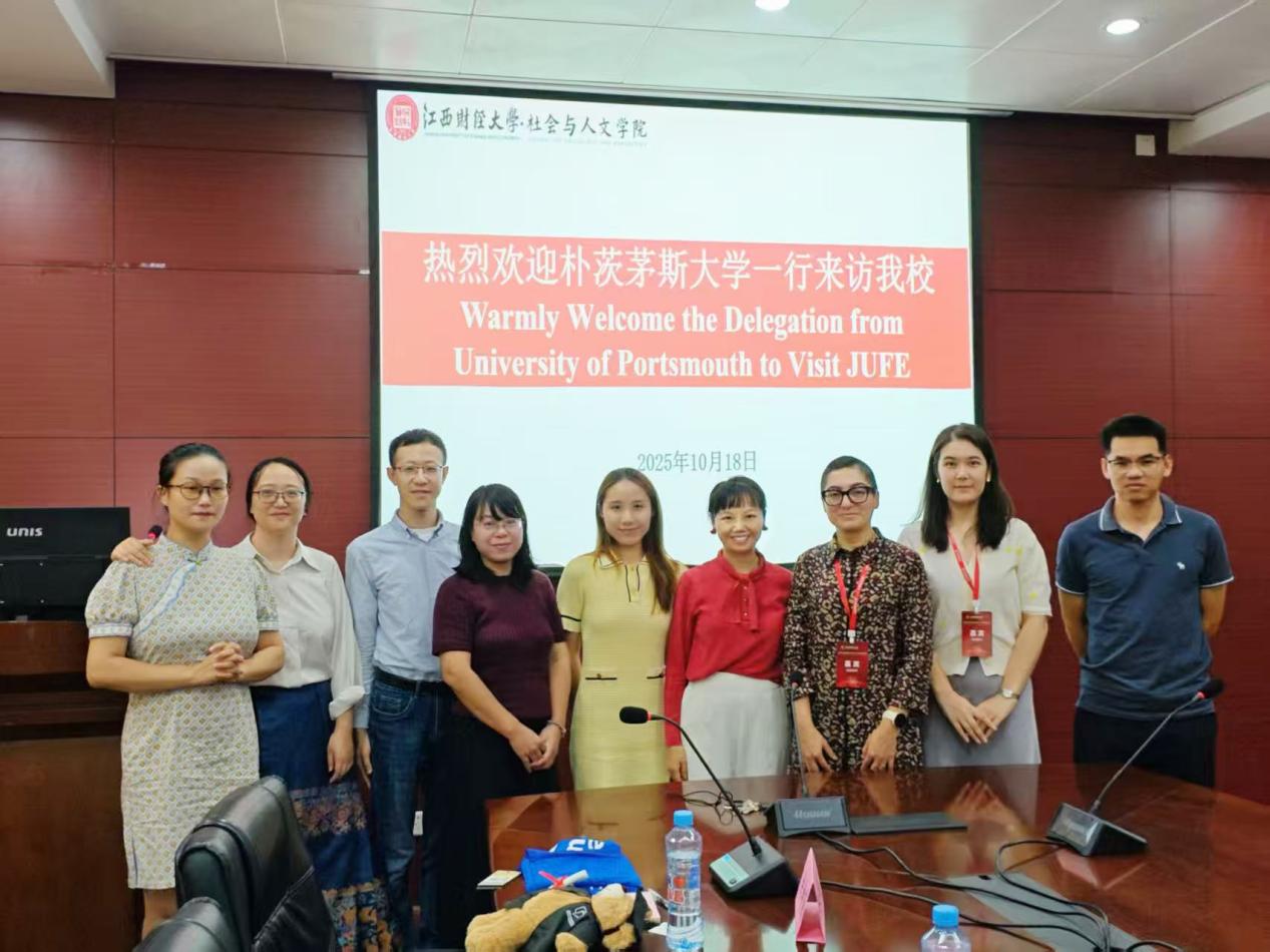 On18 October 2025, the School of Sociology and HumanitiesofJiangxi University of Finance and Economics (JUFE) hosted adelegation from the Faculty of Arts and Social Sciences, Universityof Portsmouth, led by Dr Jacqueline Priego. The two parties heldin-depth discussions on key areas including faculty and studentsexchange programmes, as well as collaborative educational initiativesbetween Chinese and international higher education institutions.