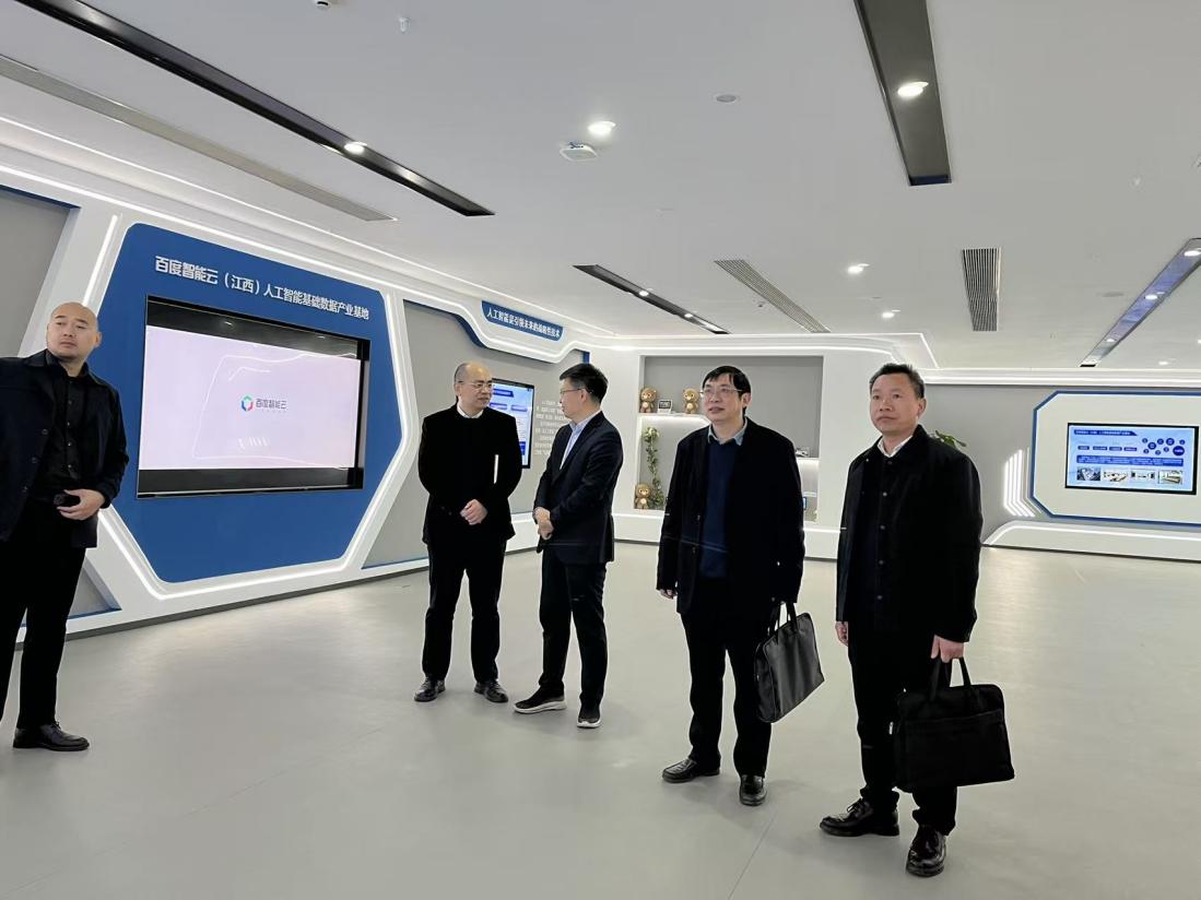 在百度智能云(江西)人工智能基础数据产业基地,调研组详细了解了基地的建设背景与运营现状。作为百度在华中地区布局的首个人工智能大模型数据标注基地,也是百度首个在国家级新区设立的数据标注基地,该基地于2024年9月正式落户赣江新区,规划面积12000平方米,可容纳1200名标注人员,目前已入驻服务商20家、在职标注员400人。百度智能云相关负责人介绍,当前人工智能产业正经历从“劳动密集型”向“知识密集型”的深刻转变,随着技术浪潮从深度学习向大模型演进,数据标注的复杂度和对作业人员的专业要求不断提升。这一趋势对高校人才培养提出了新的挑战,也带来了新的合作契机,双方围绕如何将产业前沿需求融入教学体系展开热烈讨论,一致认为可在数据标注实训、新媒体内容生产、人工智能伦理等课程建设方面开展深度合作,共同打造产教融合育人平台。