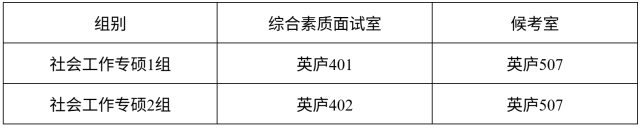 社会工作面试教室及候考室安排如下: