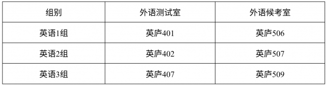 外语测试教室及候考室安排如下: